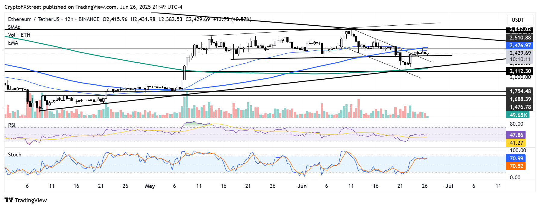 توقعات سعر إثيريوم: ETH يظهر خط المطرقة المعكوس ويختبر المستوى الحاسم 2500 دولار
