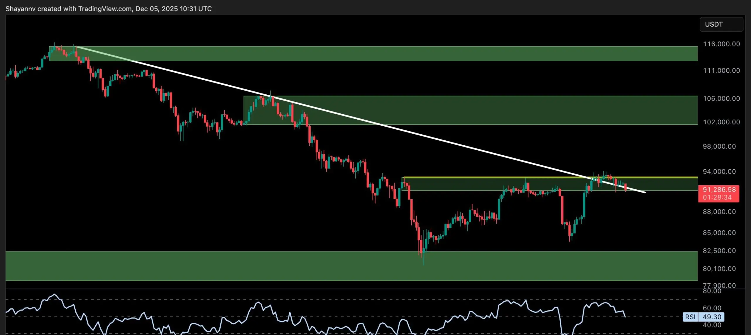 بينما تبدو بنية السوق المحلية بناءة، يظهر تباين هابط على مؤشر القوة النسبية (RSI)، والزخم يضعف. إذا فشل المشترون في الحفاظ على السعر فوق مستوى $90K في الجلسات القادمة، فقد نشهد هبوطًا نحو منطقة $80K مجددًا. وعلى الجانب الآخر، فإن اختراق قوي فوق $94K سيعيد أهداف 100 ألف+ بسرعة إلى الواجهة.