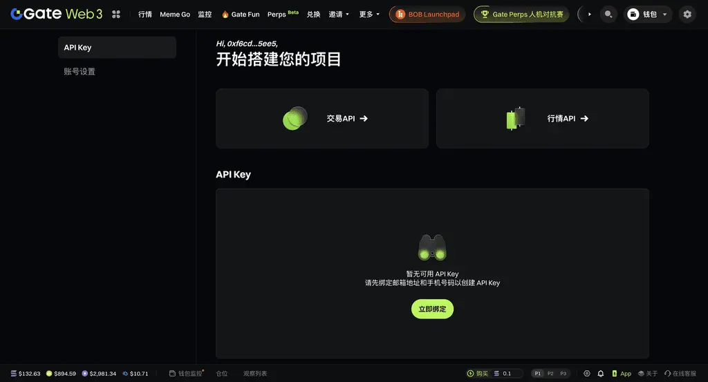 アカウントの安全性を向上させるために、API Keyを初めて作成する前にバインドを完了する必要があります。