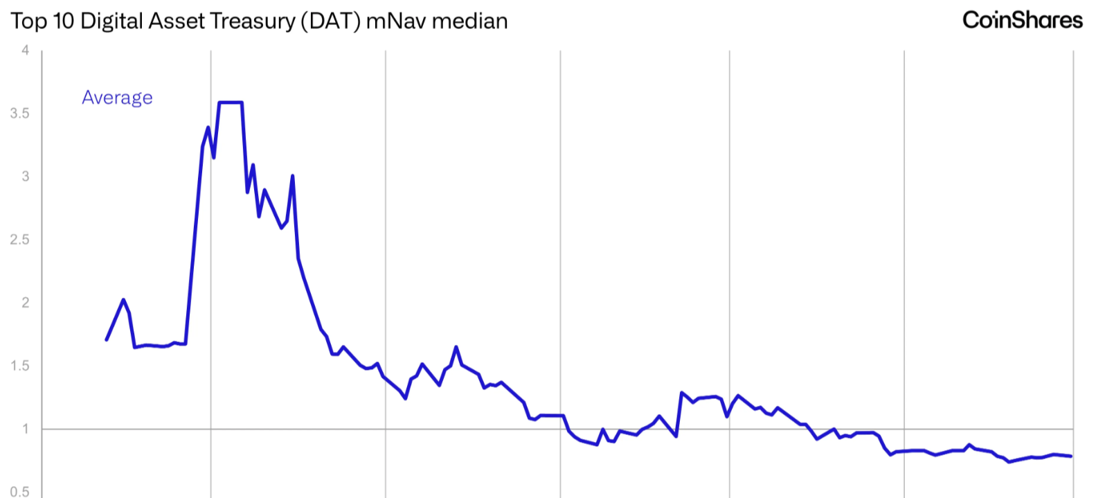 上記は、主要な暗号準備金企業トップ10のMNAV状況を示しています。ほとんどが平均で1を下回っている一方、Strategy社はギリギリのラインにあります。