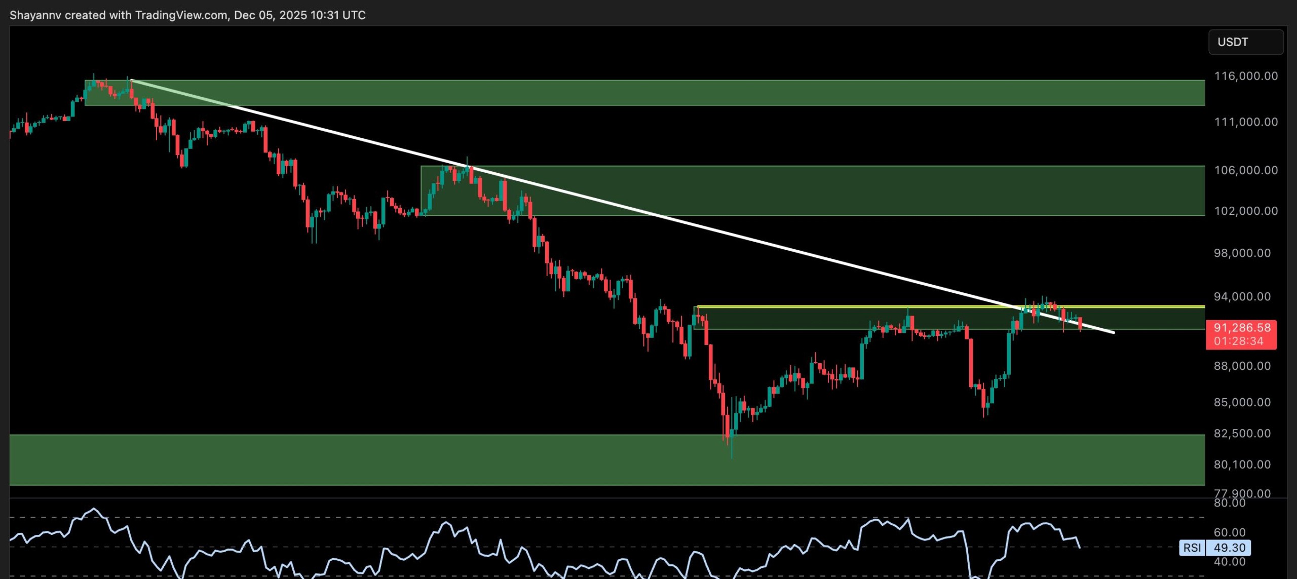 ローカルなマーケット構造は建設的に見えますが、RSIには弱気ダイバージェンスが見られ、モメンタムも弱まっています。もし買い手が今後のセッションで$90K レベルを維持できなければ、$80K ゾーンへの再下落が想定されます。一方で、$94K を上抜けてしっかり推移すれば、100k以上のターゲットが再び現実味を帯びてきます。