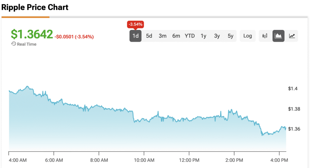At the time of writing, XRP’s price is sitting at $1.3642.