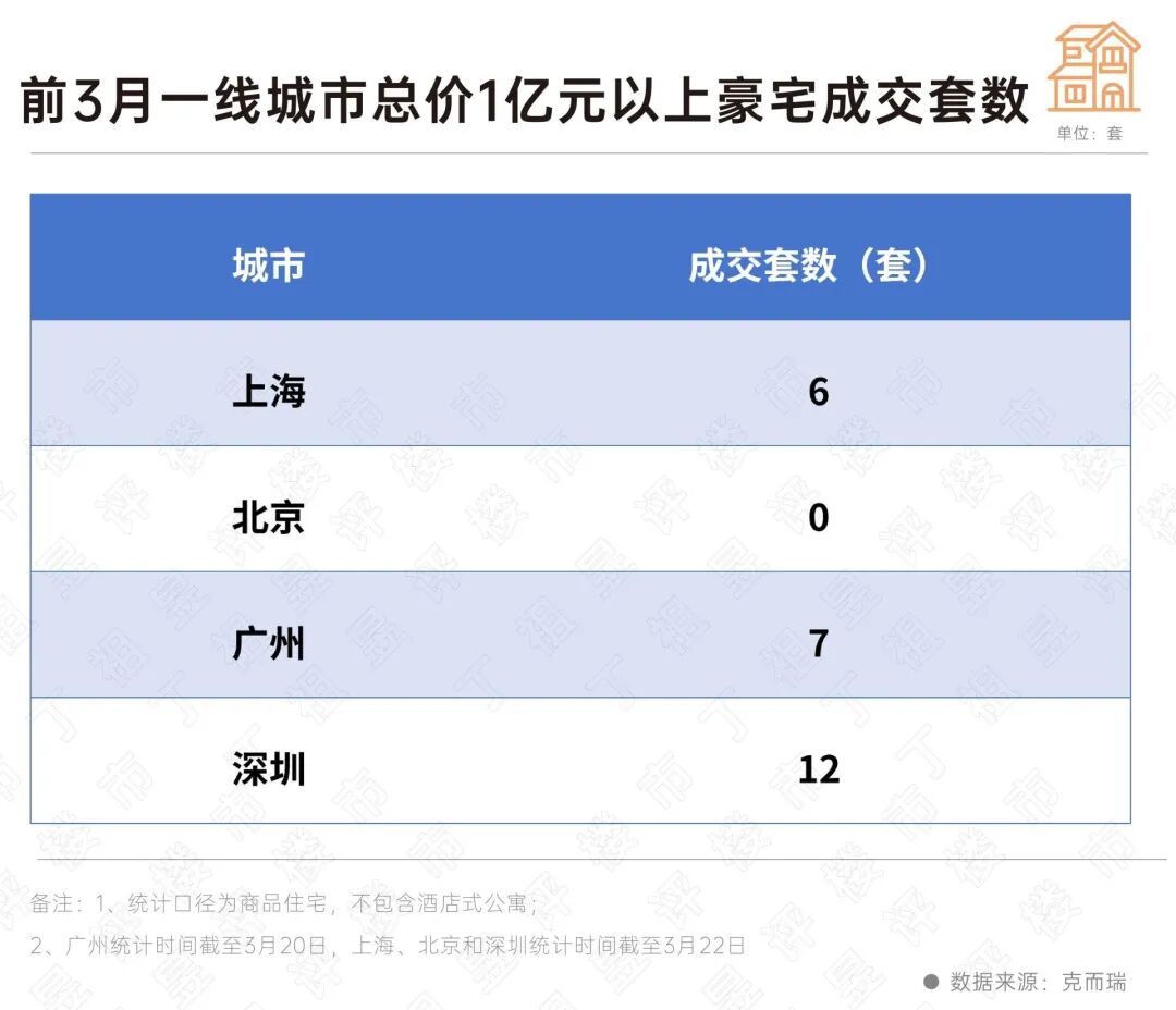 CRIC data shows that as of March 22, a total of 3,044 units of commercial residential properties priced above 10 million yuan were sold in the four first-tier cities, down about 37% compared to the same period in 2025.