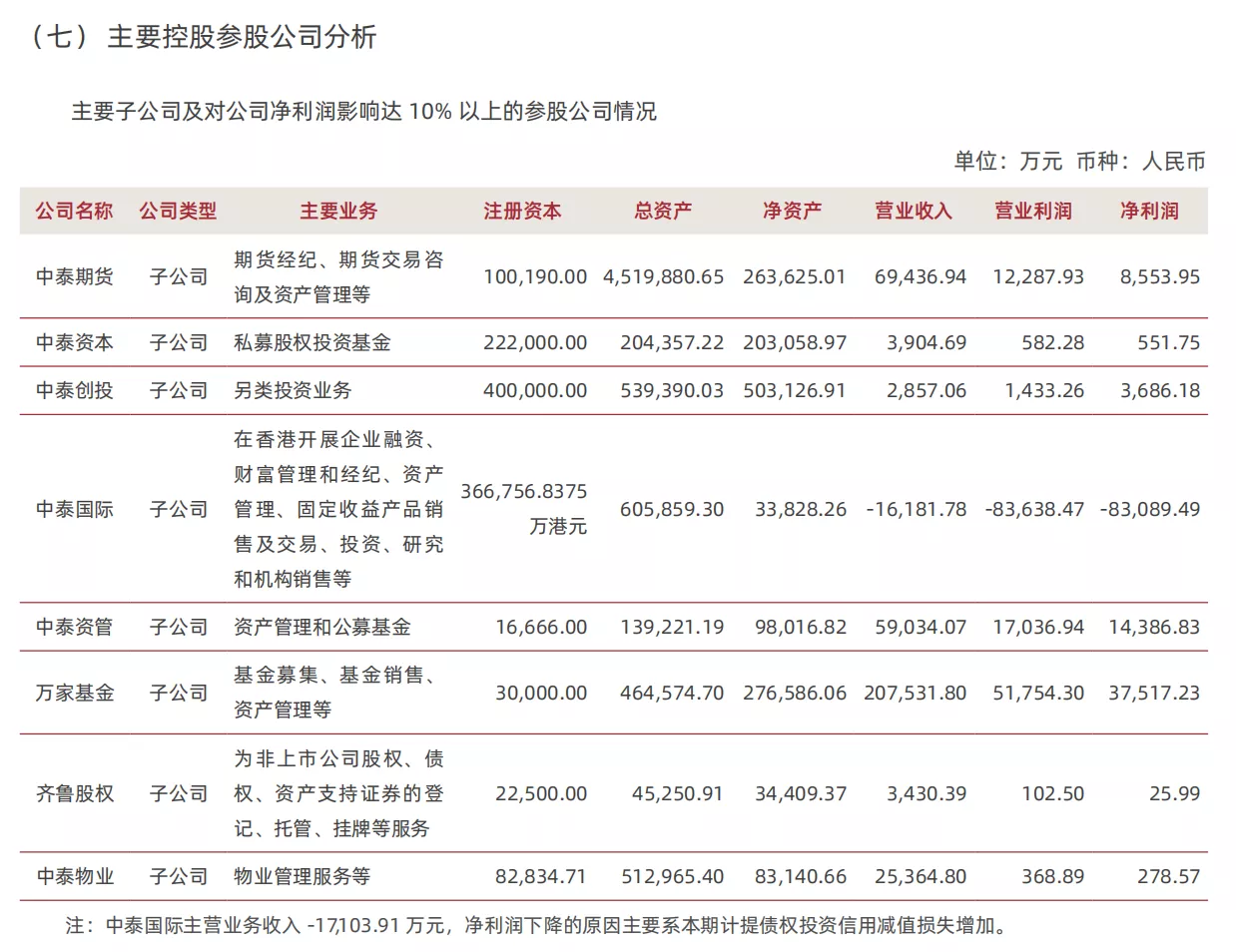 It is understood that Zhongtai Securities holds a 60% equity stake in Wanjia Fund. During the reporting period, Wanjia Fund continued to improve the effectiveness of its investment research system. All business operations remained stable, and its investment performance was generally good. The total assets under management increased steadily. As of the end of the reporting period, Wanjia Fund had a total of 195 public funds under its management, with total assets under management of 5,954.93 billion yuan, up 956.30 billion yuan from the end of 2024, representing an increase of 19.13% (data source: company internal statistics).