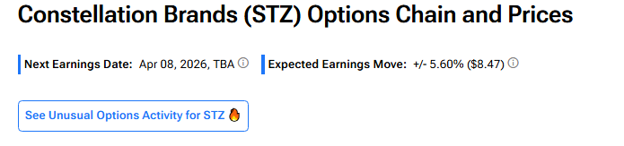 According to TipRanks’ Options Tool, options traders expect a 5.60% move in either direction in STZ stock in reaction to Q4 FY26 earnings. This implied move is higher than Constellation Brands stock’s average post-earnings move (in absolute terms) of 2.89% over the past four quarters.