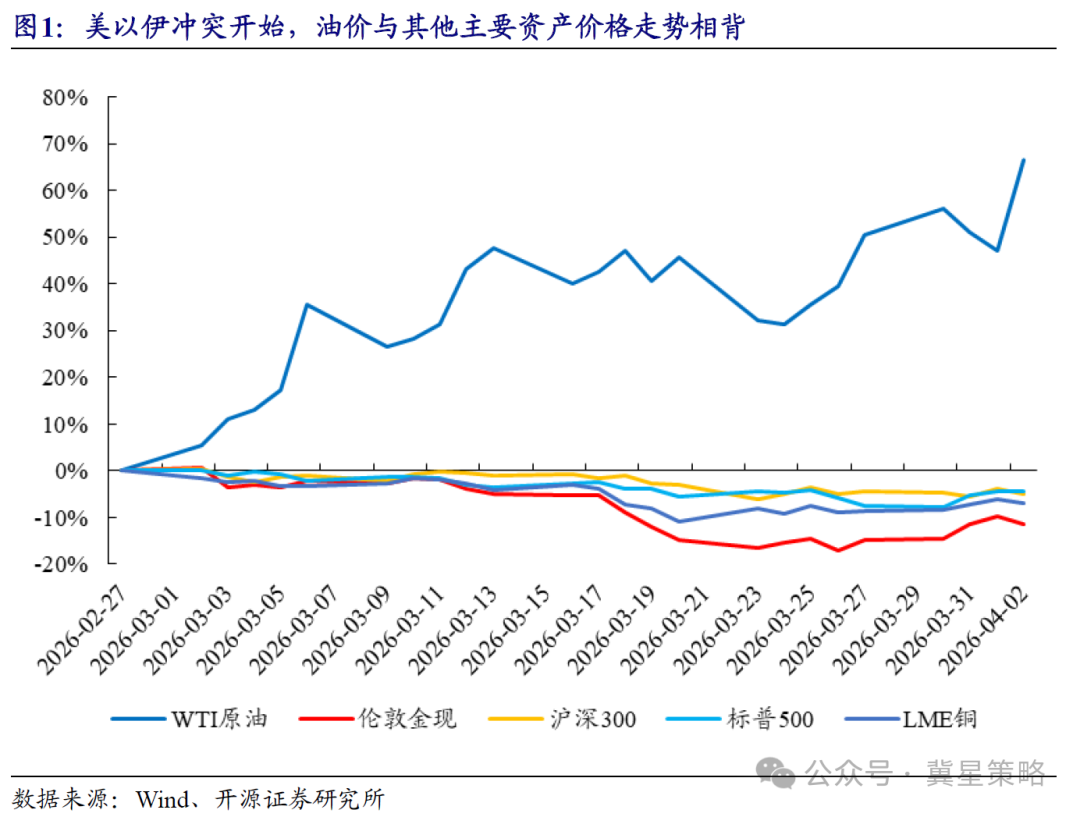 Whether it’s the expectation gap in conflict duration or in the Strait of Hormuz, the most direct impact is on crude oil prices. And because crude oil prices and their supply dynamics further propagate through a long chain of effects across global factors, crude oil prices have become the core observation point for current global asset price trends. Since the U.S.-Iran conflict began, crude oil prices have moved opposite to other major asset price trends, showing the rare phenomenon of “crude oil rallies on its own while everything else falls together.”