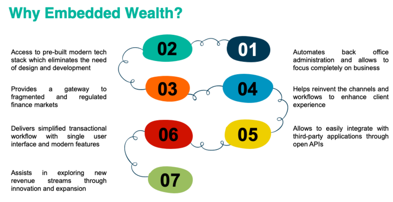 Embedded wealth has the potential to add significant value to the existing system. Fintech is re-designing finance services fostering innovation and altering the traditional finance system. Evolving customer expectations have provided favourable conditions for this new chance to become widely accepted. Adoption of this market will transform the old-rooted set-up and make it beneficial for everyone- traditional banks, challengers and consumers. It will empower both merchants and customers with innovative choices and opportunities in the embedded wealth area.