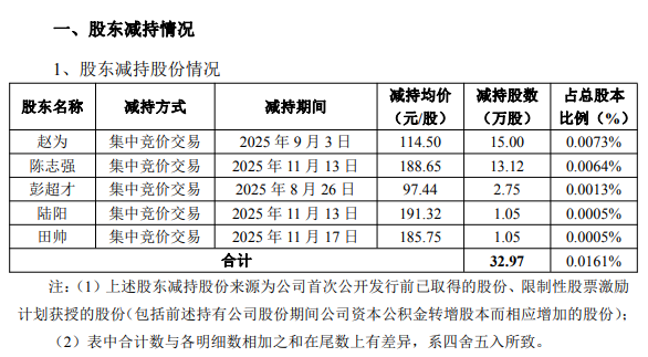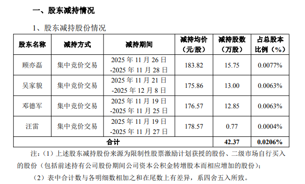 According to the disclosure materials, from August 2025 to December 2025, executives including顾亦磊, the deputy chairman and senior vice president; 吴家貌, director and senior vice president; 邓德军, vice president; and 汪雷, vice president, together reduced their holdings by 753.4k shares in total, with the total amount exceeding 120 million yuan.