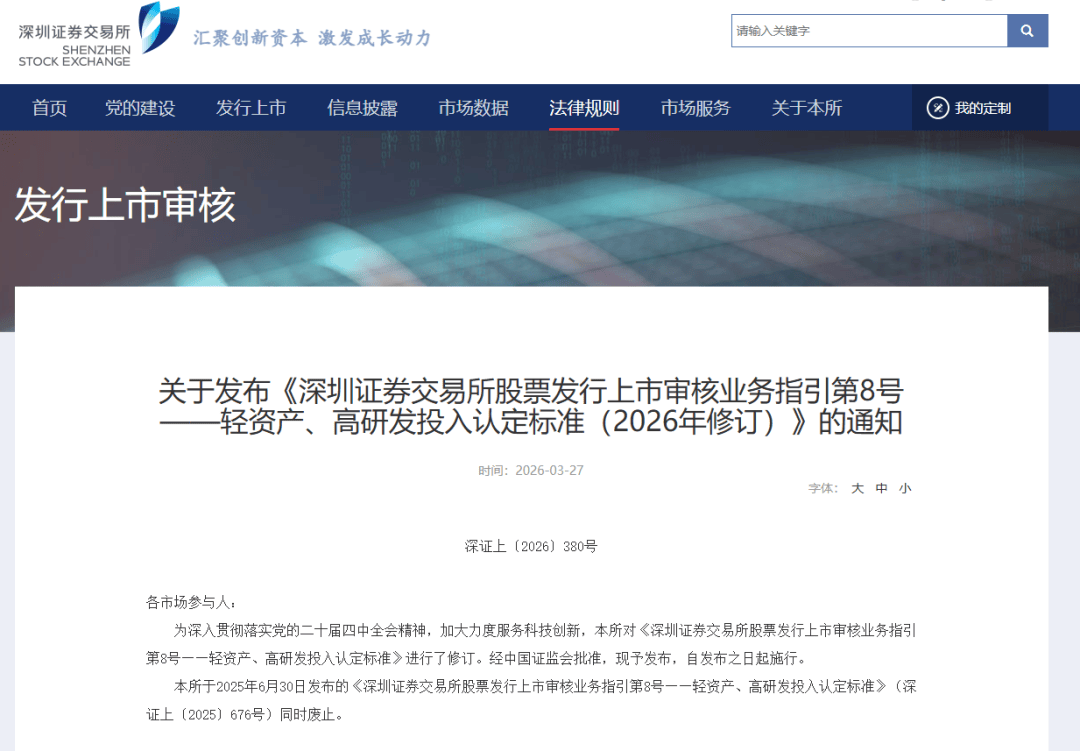 Against this backdrop, the Shanghai and Shenzhen exchanges revised and released the “Light-asset, High R&D Investment Guidelines.” Building on prior pilots in the STAR Market and the ChiNext board, it added recognition standards for the STAR Market’s “light-asset, high R&D investment” in the main-board market.