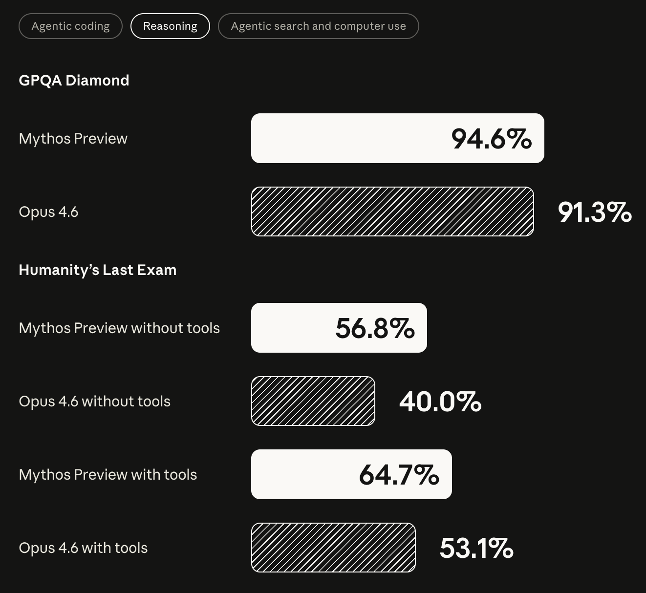 On evaluation benchmarks, Mythos also shows a leapfrog-style level of evolution compared with Opus 4.6. For example, in network security vulnerability reproduction tests, Mythos reached 83.1%, while Opus 4.6 was 66.6%; across multiple coding and reasoning tests, Mythos also achieved a clear lead.