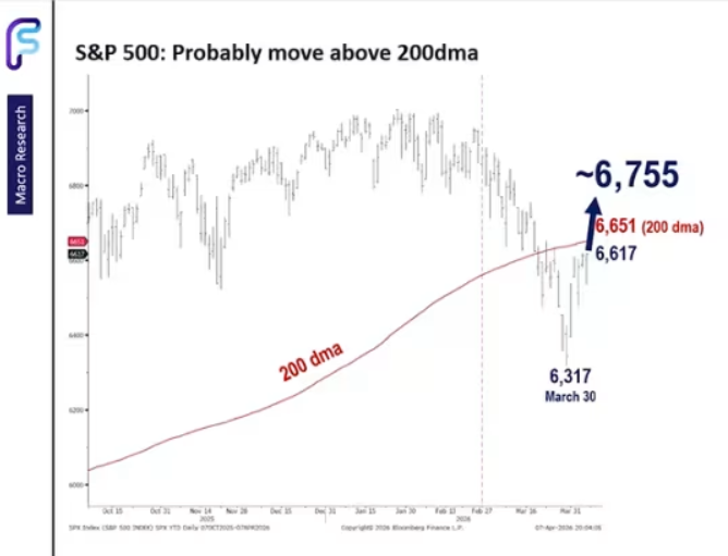 In his daily macro brief, he noted that if the S&P 500 can move back above its 200-day moving average, the market will most likely see a “decisive upside breakout.”