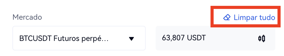 Atalho "Deletar tudo": Se o usuário tiver múltiplos dados para limpar, este atalho pode ser usado em vez de deletar manualmente um por um. Após clicar, os parâmetros podem ser redefinidos.