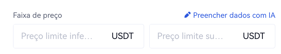 Faixa de preço: O preço limite inferior refere-se ao preço de compra mais baixo para a execução das transações de grade. Se estiver abaixo desse preço, nenhuma compra adicional será permitida. Em contraste, o preço limite superior é o preço de venda mais alto para a execução das transações de grade. Se estiver acima desse preço, nenhuma venda adicional será permitida.