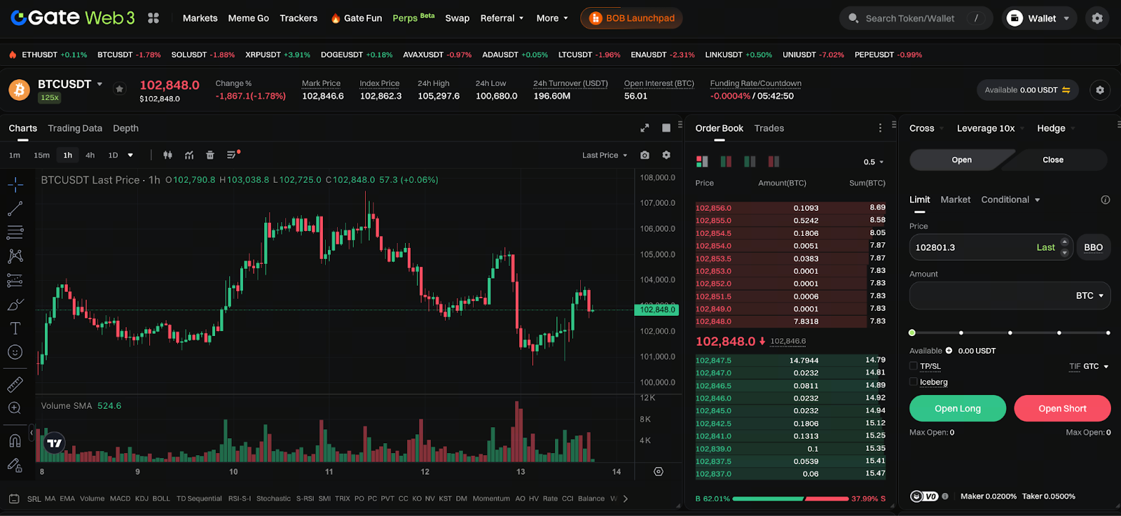 • Suporte a Alta Alavancagem: Gate Perp DEX oferece alavancagem de até 125x, possibilitando que traders reajam com flexibilidade à volatilidade do mercado. Tanto operadores de curto prazo quanto investidores de longo prazo escolhem o nível de alavancagem conforme o perfil de risco.