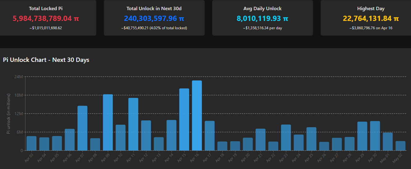 Calendário de Desbloqueio do Token PI. Fonte: PiScan