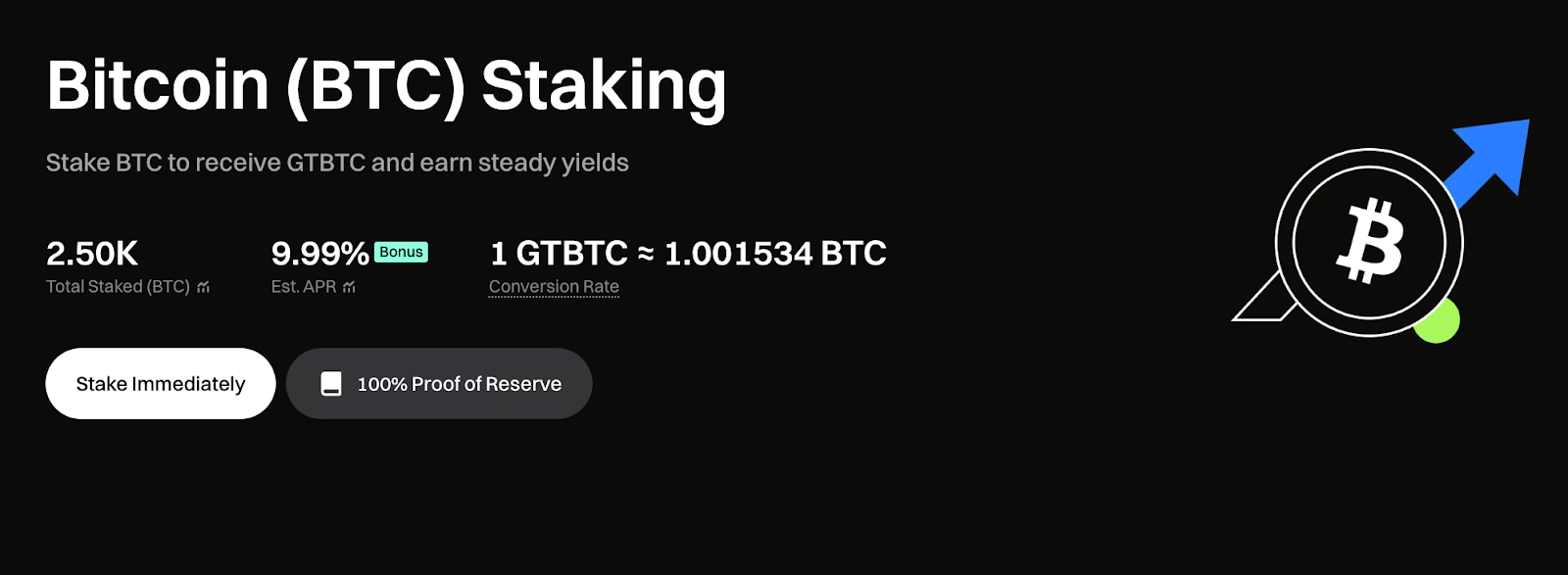 Gate BTC Staking é um serviço de staking de Bitcoin oferecido por Gate que permite aos utilizadores depositar Bitcoin na plataforma para obter rendimentos anualizados estáveis. Atualmente, Gate BTC Staking oferece uma taxa anualizada de 9,99 %, tornando-se especialmente atrativo para investidores que pretendem aumentar os seus ativos em Bitcoin através de rendimento passivo.