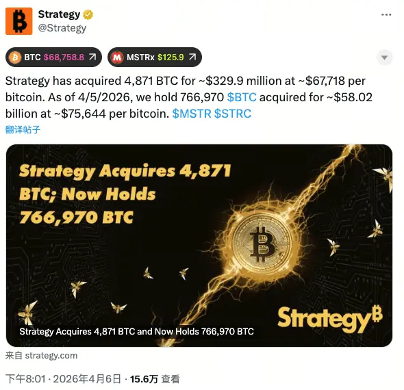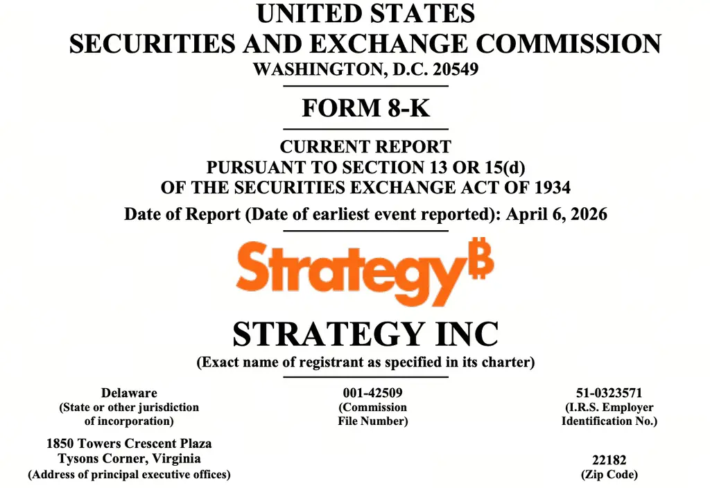 Na primeira semana de Abril de 2026, a Strategy Inc. divulgou, num formulário 8-K apresentado à SEC dos EUA, um conjunto de dados aparentemente contraditórios: por um lado, as perdas não realizadas de ativos digitais no primeiro trimestre atingiram 14,46 mil milhões de dólares, mas a empresa continuou, ao mesmo tempo, a comprar Bitcoin — entre 1 e 5 de Abril, comprou cerca de 329,9 milhões de dólares de Bitcoin, num total de 4.871 moedas, com um custo médio de aproximadamente 67.718 dólares.
