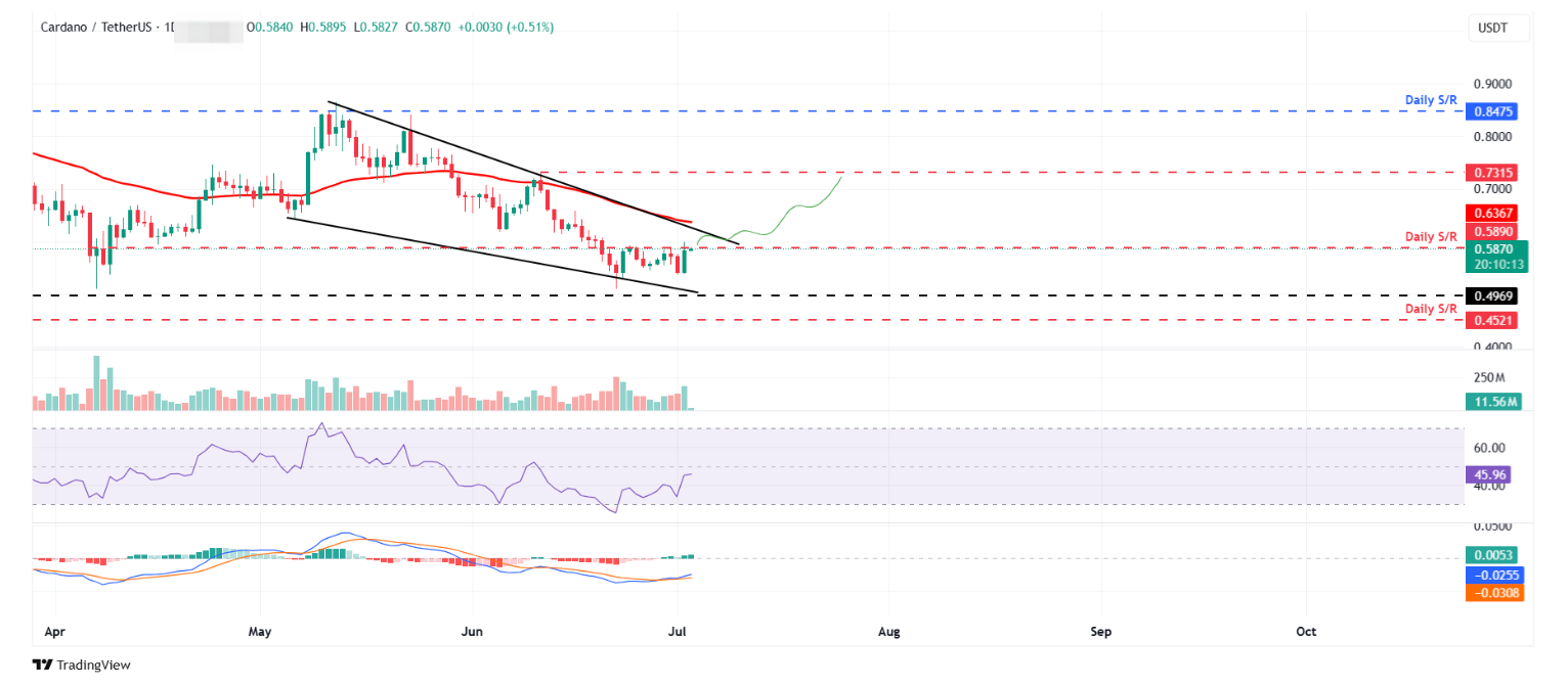 Технический анализ ADA: нисходящий клин на грани прорыва, ключевой уровень сопротивления на 0,58 долларов