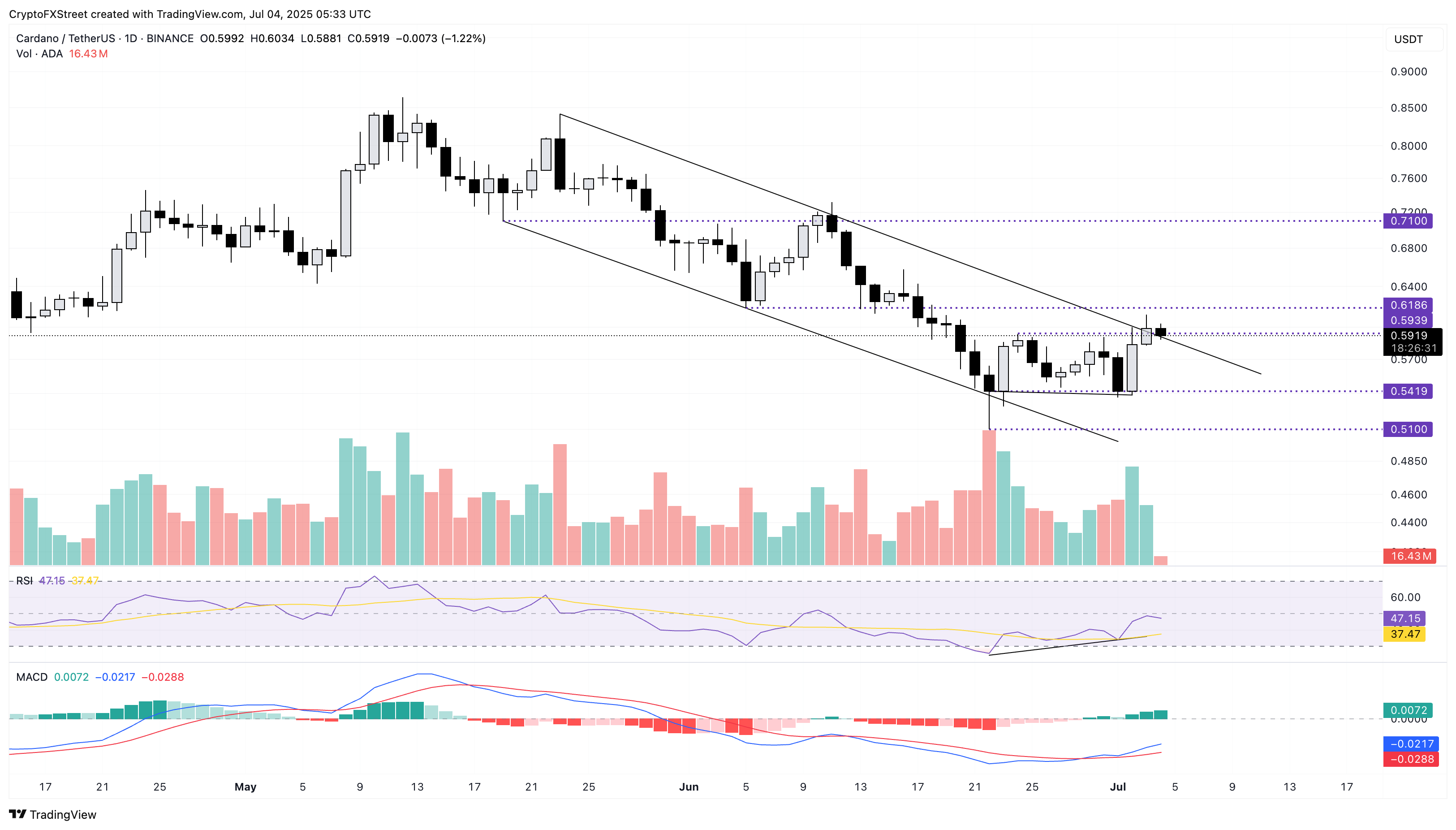 ADA нацелена на прорыв канала, целевая цена составляет 0,71 доллара