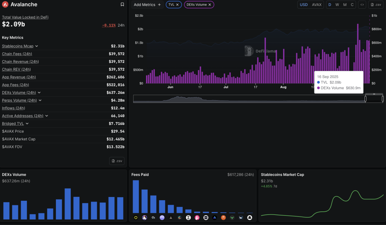 Согласно данным от DeFiLlama, Общая заблокированная стоимость (TVL) в экосистеме Avalanche достигла отметки 2,09 миллиарда USD, увеличившись по сравнению с 1,925 миллиарда USD на прошлой неделе. Эта цифра отражает значительное расширение потока цифровых активов, распределенных по сети.