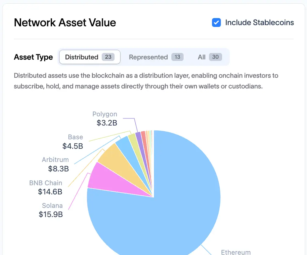 Ethereum has the largest network asset value among the blockchain networks. Source: RWA.XYZ