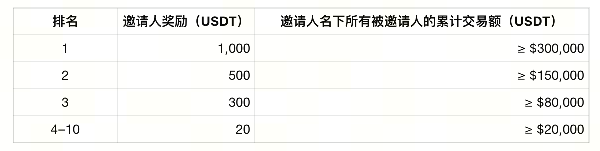 活动二:邀请好友组队交易,Top 10 邀请人再得最高 1,000 USDT