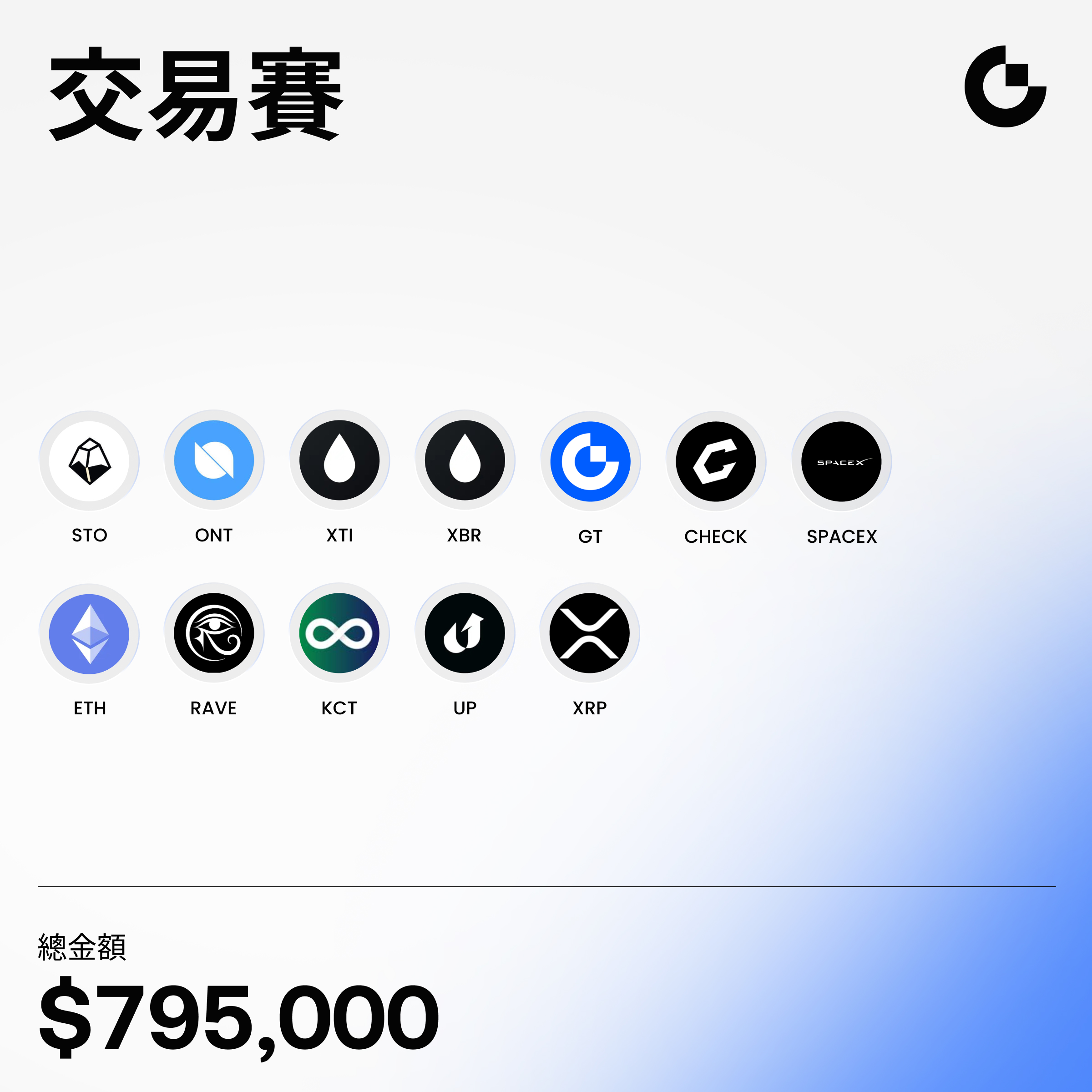 本週期我們舉行了 12 場交易大賽,獎勵總價值 $795,000。