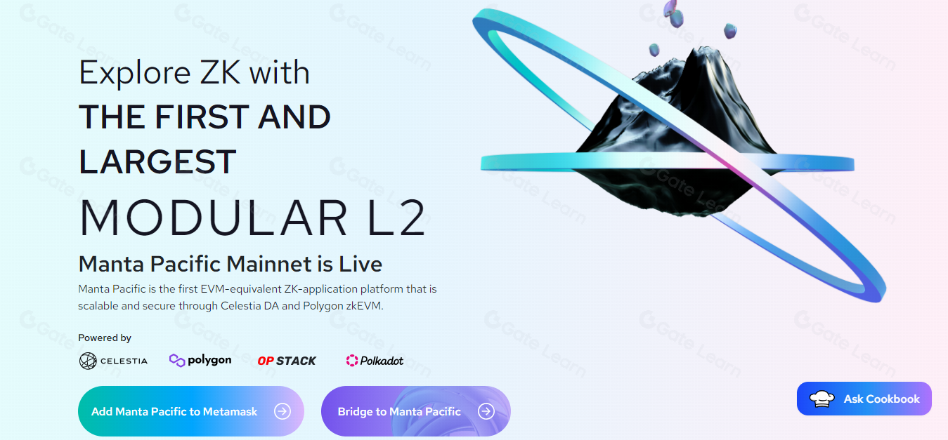 • Manta 太平洋: 是以太坊上的 Layer 2 生態繫統,專爲兼容以太坊虛擬機 (EVM) 的零知識應用而設計。它提供可擴展性和低廉的 gas 費用,非常適合使用 Solidity 部署智能合約。Manta 太平洋利用 Celestia 保證數據可用性,併與以太坊的生態繫統集成。