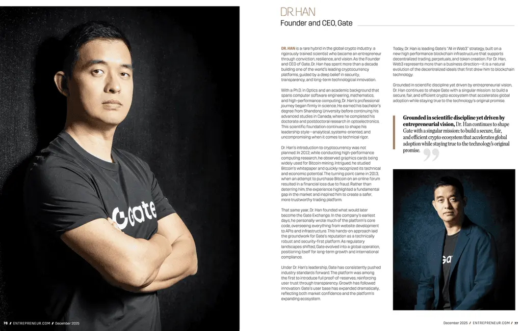 “The 100” 榜单由 Entrepreneur Middle East 历时一年策划与评选,重点聚焦在区域商业、科技与创新领域中,对产业发展产生长期影响的个人、先锋人物与行业领导者。Dr. Han 此次入选,不仅体现其在数字资产与 Web3 领域的前瞻性判断与长期实践,也反映 Gate 在全球加密行业持续推进专业化建设、产品创新与国际化布局过程中所形成的综合实力。